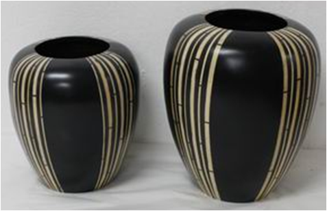 set of 2 vases with incrusted bamboo
