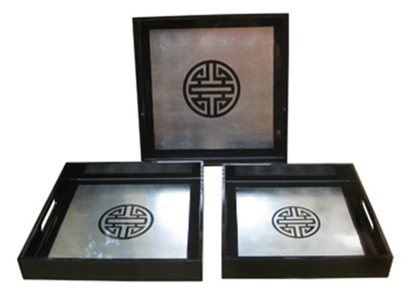 set of 3 square trays with chinese letter