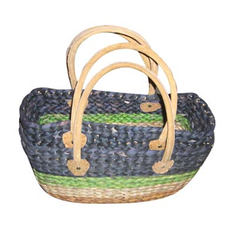 Vietnam Water hyacinth bag with leather handles Set 2