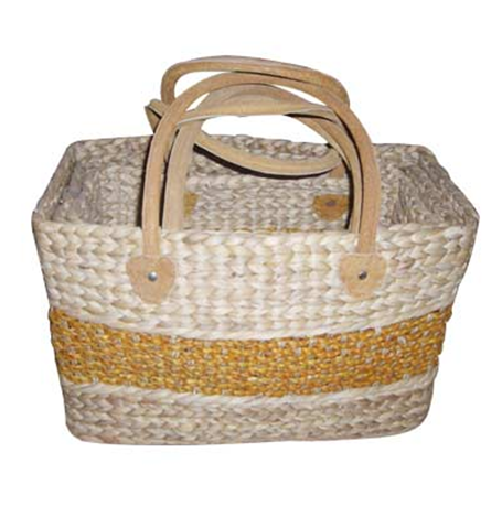 Vietnam Water hyacinth bag with leather handles Set 2