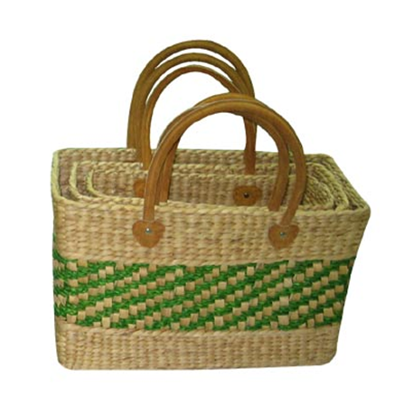 Vietnam Water hyacinth bag with leather handles Set 3